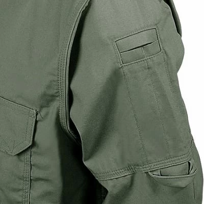 The confidential documents in your sweaty hands are about to slip onto the floor in a puddle of perspiration. Try out the hands-free style of the 5.11 Tactical 72157 182 OD Green Long Sleeve Cotton Work Shirt, a button-up beauty that offers a patented place to tuck away important paperwork.