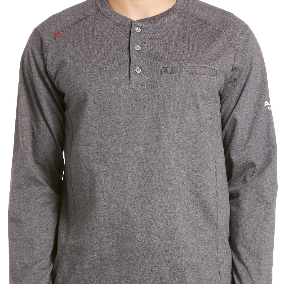 Ariat® flame resistant knit shirts are constructed with the ultimate comfort, technology and durability in mind. Our FR Air Henley features lightweight 6 oz jersey fabric and a convenient Velcro® closure chest pocket.