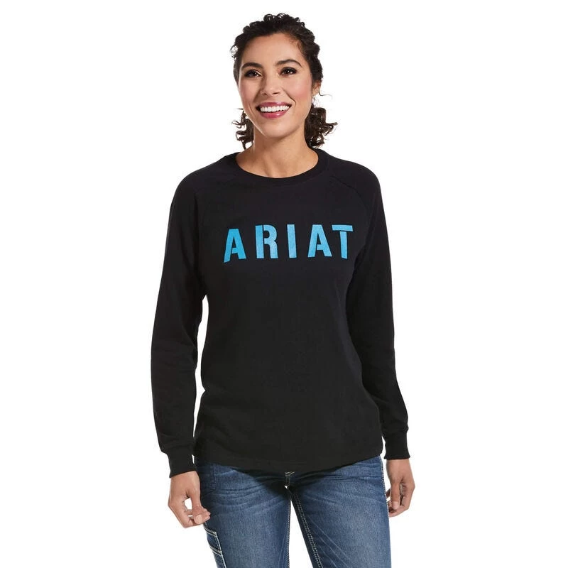 Ariat Rebar Shirts: Women’s 10033084 Black Cotton Strong Long Sleeve Block T-Shirt