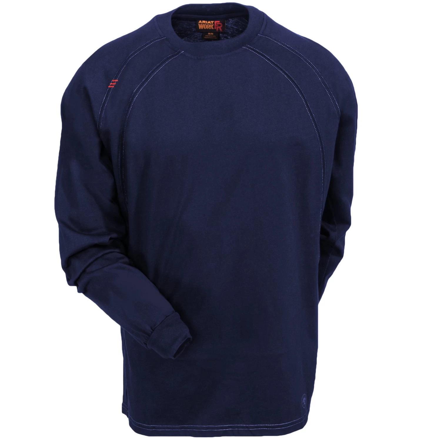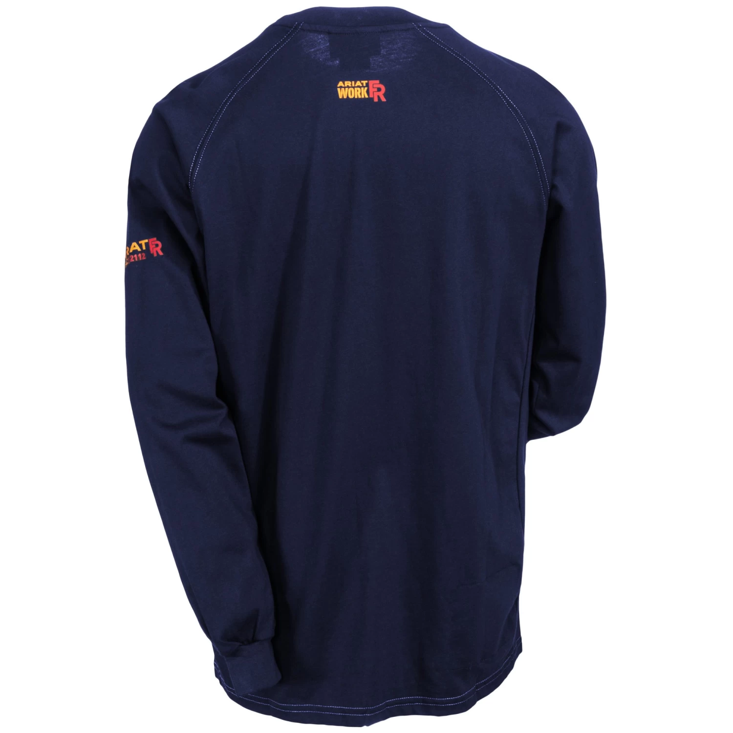 There’s nothing better than a comfortable work shirt. Trust us – we’re workwear experts. So while you’re out on the job, let our expertise help you be comfortable and safe while you go about using your own expertise. Whether you’re an electrician, utility worker, emergency response, lineman, or the like, Ariat FR will keep you safe, comfortable, and looking good in their ~Ariat 10012256 Moisture-Wicking FR Men’s Navy Blue Crew Work Shirt. Work that requires flame-resistant work wear is usually pretty tough. Many of our FR customers get called out to solve problems at all hours of the day and night, and in any kind of weather. You work hard, and we know that, so let us make sure your FR gear is ready for action. When investing in FR clothing, don’t be fooled by lesser alternatives that won’t last; you’ll get the most value for your money when you choose the highest quality brands, like Ariat, that offer work gear you can wear season after season, job after job. This tough flame-resistant shirt is safe, too. Rated CAT 2 with APTV 8.9 (cal/cm2), it’s also NFPA 70E and NFPA 2112 approved.