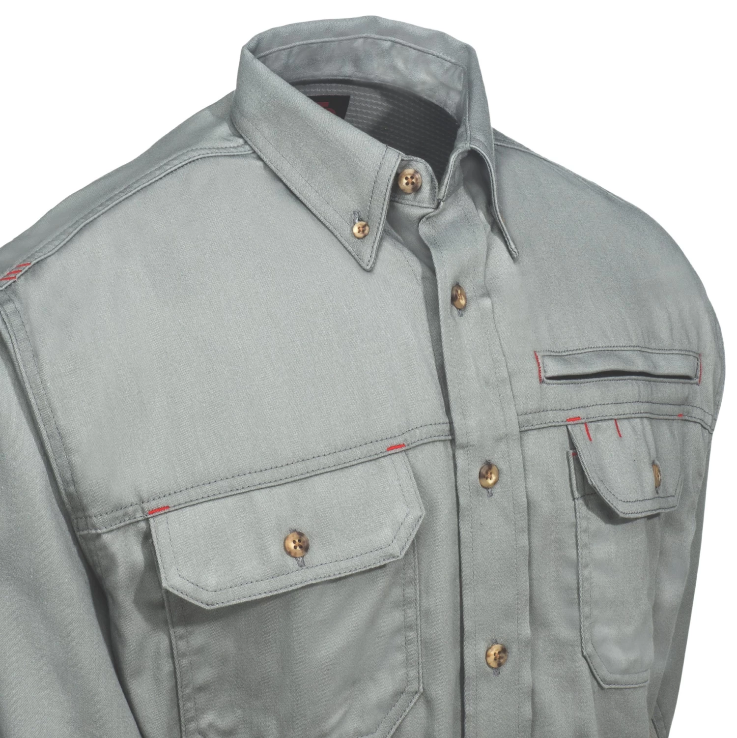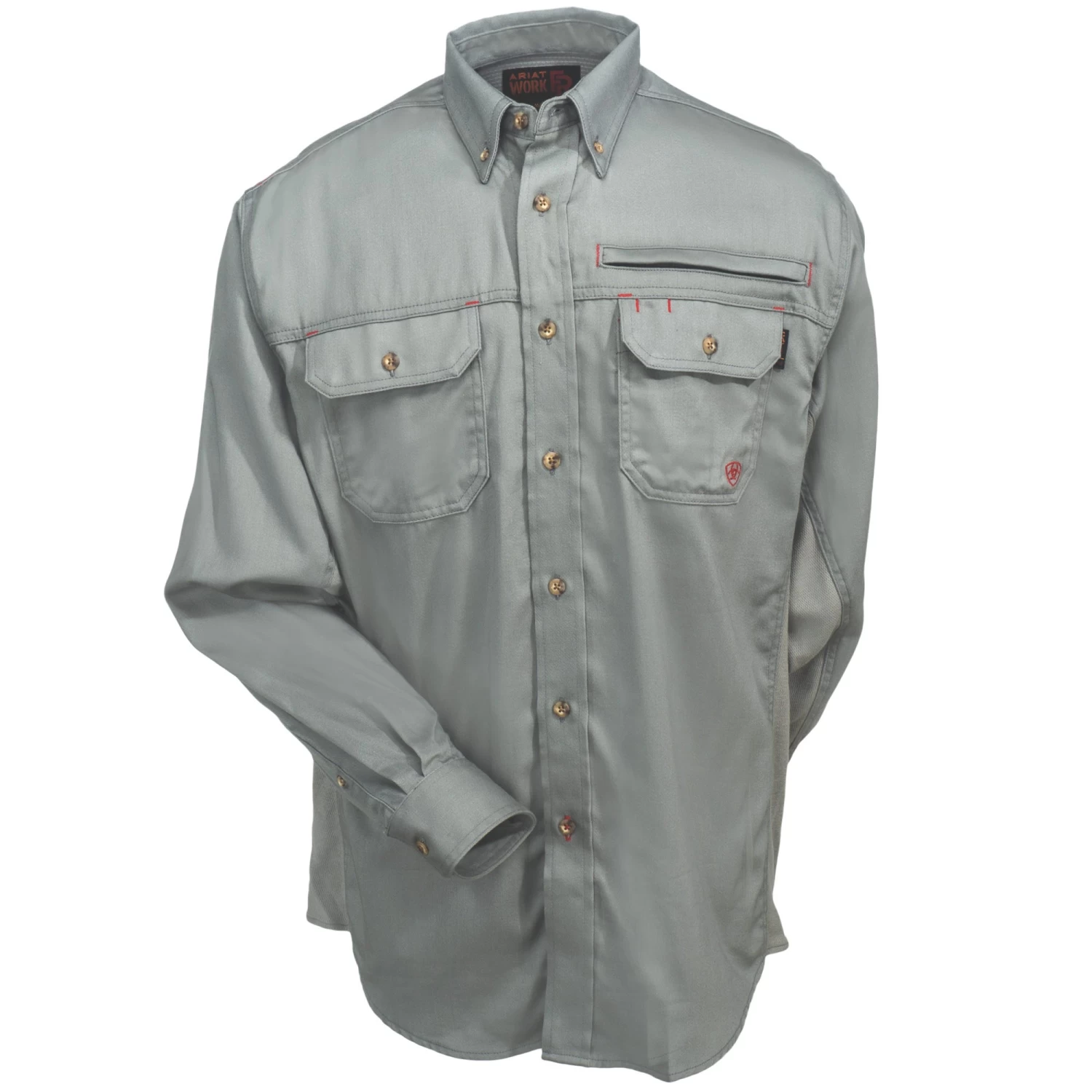 Ariat Work FR Shirts: Men’s 10019063 FR Solid Vented Long-Sleeve Button-Down Silver Shirt