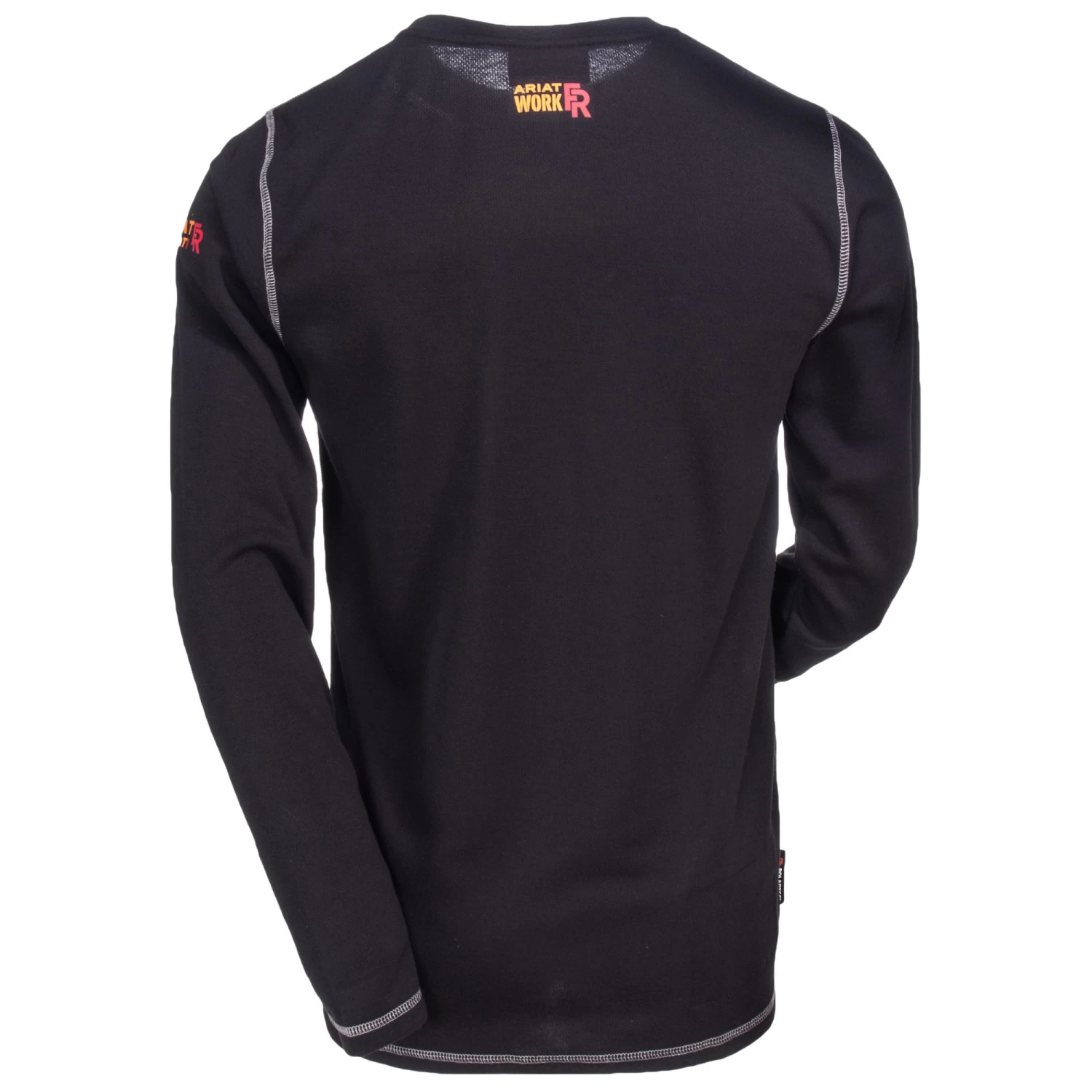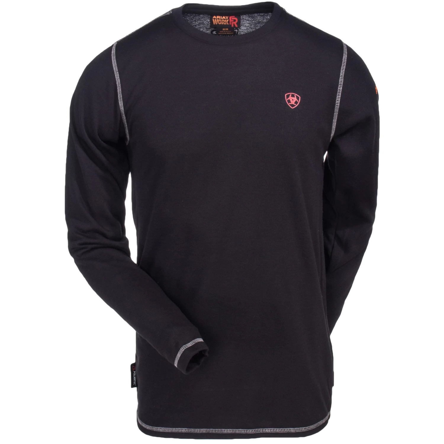 Protect yourself in the warmth and comfort from Ariat for all of your flame resistant needs. Ariat has a long history of tough work gear for the toughest of jobs, so when it’s time to invest in FR clothes, trust the brand that lasts. When the temperature drops make sure you have the best in warmth, moisture control, and efficient body heat trapping in a soft and comfortable base layer. This fitted ~Ariat Men’s Polartec FR 10014892 Black Base Layer Shirt is the perfect choice for dealing with cold weather while maintaining the safety of flame-resistant work clothes. This durable men’s FR under shirt is rated CAT 1, ATPV 5 (cal/cm2), NFPA 70E, and NFPA 2112 approved.
