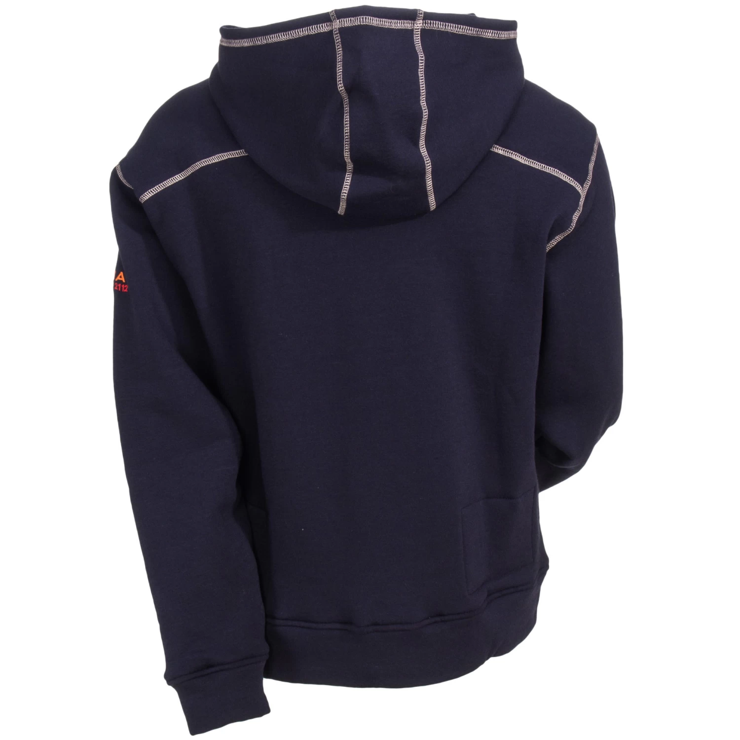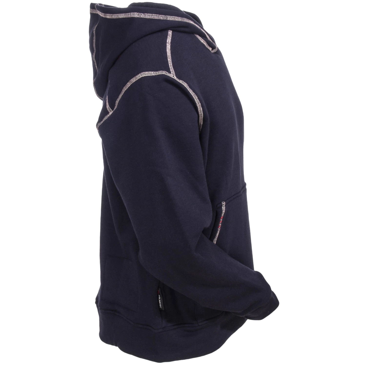 You work hard on the job, so make sure your clothing works hard for you as well. Ariat stands by it’s quality, and they know that getting FR clothing is no small investment for you. Whether you’re a utility worker or lineman trying to restore power in the midst of an ice storm, or an electrician whose indoor/outdoor job needs an easy layer of warmth that protects you as you work, this navy blue hoodie is the perfect choice. The Polartec PowerDry FR gives this jersey fabric superior moisture-wicking properties for sweat management as it draws your sweat vapors away from your skin and into the fabric, where the PowerDry technology speeds the evaporation process to keep you comfortable. Even in cold weather, hard work makes you sweat. The problem is when that sweat soaks into your work clothes and hinders your body’s ability to regulate your core temperature. You can avoid the chill with this men’s FR sweatshirt. The bi-component construction of the sweatshirt uses a water-resistant jersey knit with velour Dual Hazard technical mid layer and durable, soft FR knit with lightweight insulation. The 10-ounce FR knit is made of 44% rayon, 39% modacrylic, 14% para-aramid, and 3% Spandex.