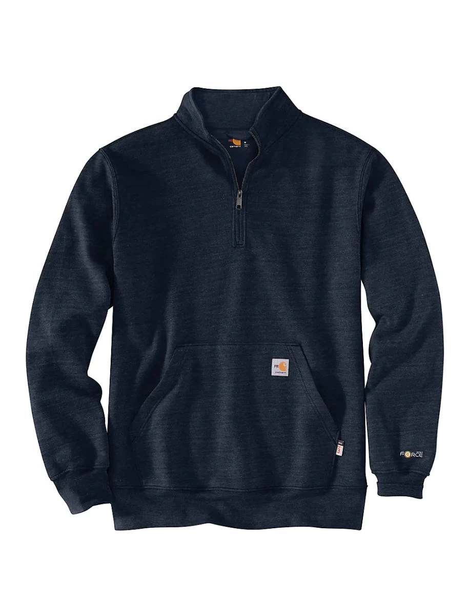 If you’ve been searching near and far for fire resistance and warmth from a piece of workwear, we have what you need. Those two qualities make perfect sense in this ~Carhartt Force Men’s 105028 I26 Navy Flame Resistant Mock Neck Sweatshirt, believe it or not. The flame-resistant blend of materials are also awesome at keeping you warm, dry, and comfortable all day.Â