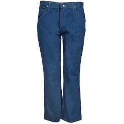 You can easily fit these relaxed fit blue jeans over most work boots, thanks to their straight leg opening. A comfortable fit throughout the seat and thigh areas give you enhanced room to move as you go about your work day.