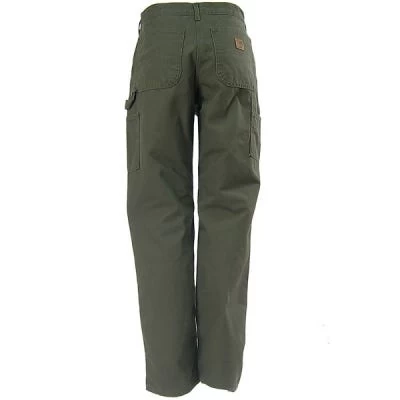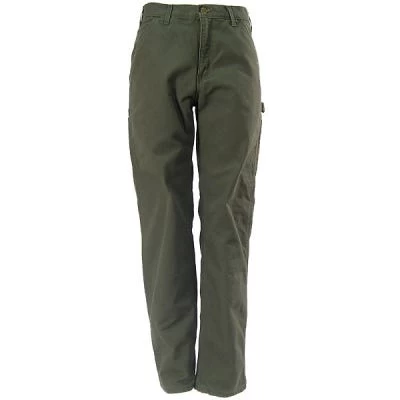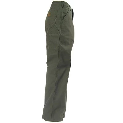 These Carhartt Flannel Lined Pants are made of 100% ring-spun, cotton duck with plied yarn. The 12-ounce moss colored duck is water resistant and extremely sturdy and the lining is made up of 65% polyester and 35% cotton flannel.