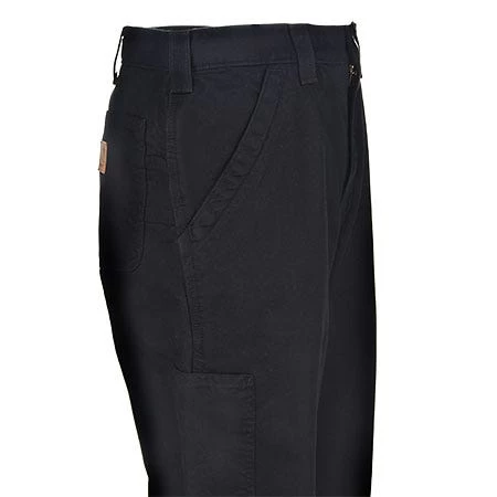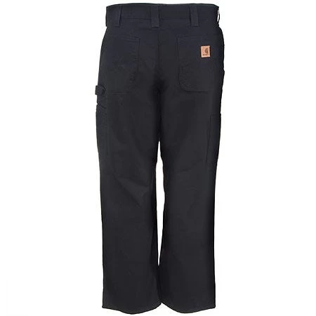 The truth is, these dungaree pants are every bit as durable as jeans, but they feel even more lightweight and comfortable. Made with 7.5 ounce, 100% ring-spun water-resistant cotton canvas material, the black fabric is easy to wash and great to wear. Natural cotton is light and breathable on the body, easy to machine wash, and soft to the touch. Through the ring-spun process, the cotton fibers of these Carhartt pants become even stronger and softer. That material actually gets a little bit softer every time you machine wash it.
