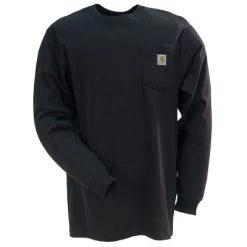 This quality t-shirt features classic black styling and weighs in at an impressive 6.75-ounces. The strong materials construct is equally impressive, with 100%-cotton jersey knit being the Carhartt fabric of choice. You don’t want to pass up ~the Carhartt Men’s Black K126 BLK Long Sleeve Work Shirt.
