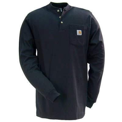 The 6.75 ounce 100% cotton and 3-button front placket mean this black shirt is cool enough for late Spring jobs, and the long sleeves will make you more comfortable when you go into those heavily air-conditioned offices. It also goes well under an overshirt for those breezy days. The rib-knit collar and cuffs make nice accents, and the left chest pocket sports a Carhartt logo to show your good taste. The side seam construction helps minimize twisting, too.