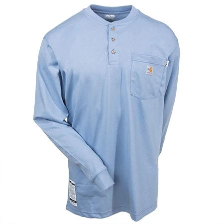 Carhartt Shirts: Men’s Blue 100237 465 Flame Resistant Henley Work Shirt