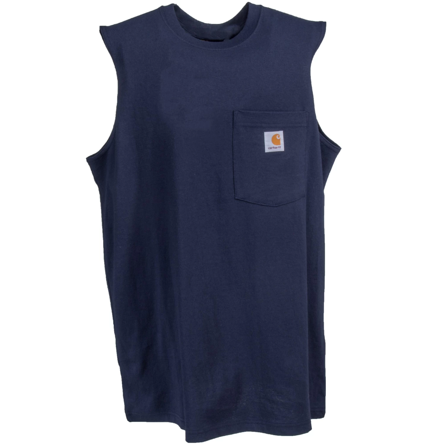 Stay cool the right way by ordering this Carhartt Men’s Navy Blue 100374 412 Workwear Pocket Sleeveless T-Shirt from Working Person’s Store. Don’t let warm working conditions ruin your day – take charge by wearing Carhartt workwear.
