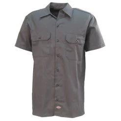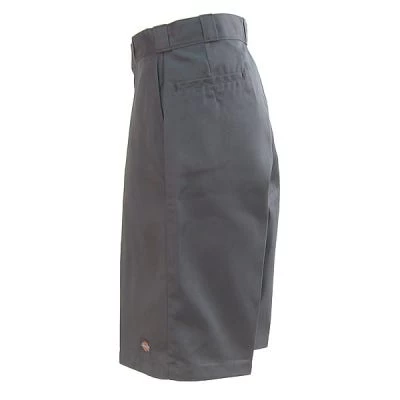 These charcoal grey shorts are made from 8.5 ounce, 65% polyester and 35% cotton twill with a Scotchgard stain release finish. They have a 13 inch inseam, and lockstitched hems. They have a flat front, non-roll waistband, and a no-iron permanent crease. These men’s shorts are also wrinkle resistant so you will stay looking neat and professional the entire day. They feature the cell phone pocket and Dickies logo on the left front leg.