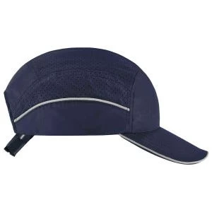 Reflective piping on the brim and sides of the LED Ergodyne hat allows you to be seen in low light settings. This increased visibility is vital to staying safe on the job site. This long brim style has been tested and approved to meet the EN 812-2012 standard. At Working Person’s Store, we offer multiple brim sizes: micro (30mm/1in), short (50mm/2in), and this long brim bump cap 80mm/3in).