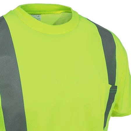 The material of this hi-vis shirt is 100% ANSI wicking Birdseye polyester that resists wrinkles, dries quickly, and stands up to harsh wear and tear of your job. In addition it wicks moisture away from your skin, so you stay less sweaty and cooler, especially when you’re working hard. This shirt in manufactured to be lightweight and breathable, perfect for hot summer days on the job site.