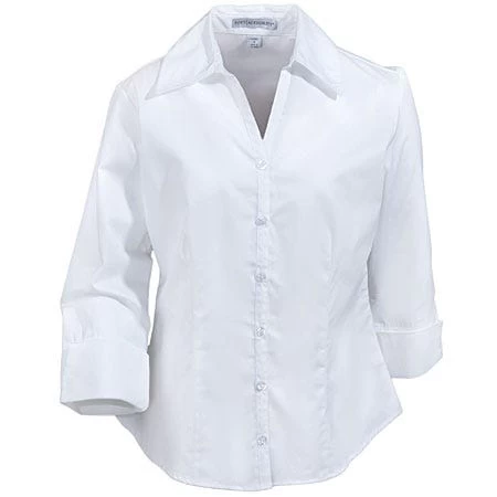 Port Authority Blouses: L6290 Women’s White 3/4 Sleeve Open-Neck Blouse
