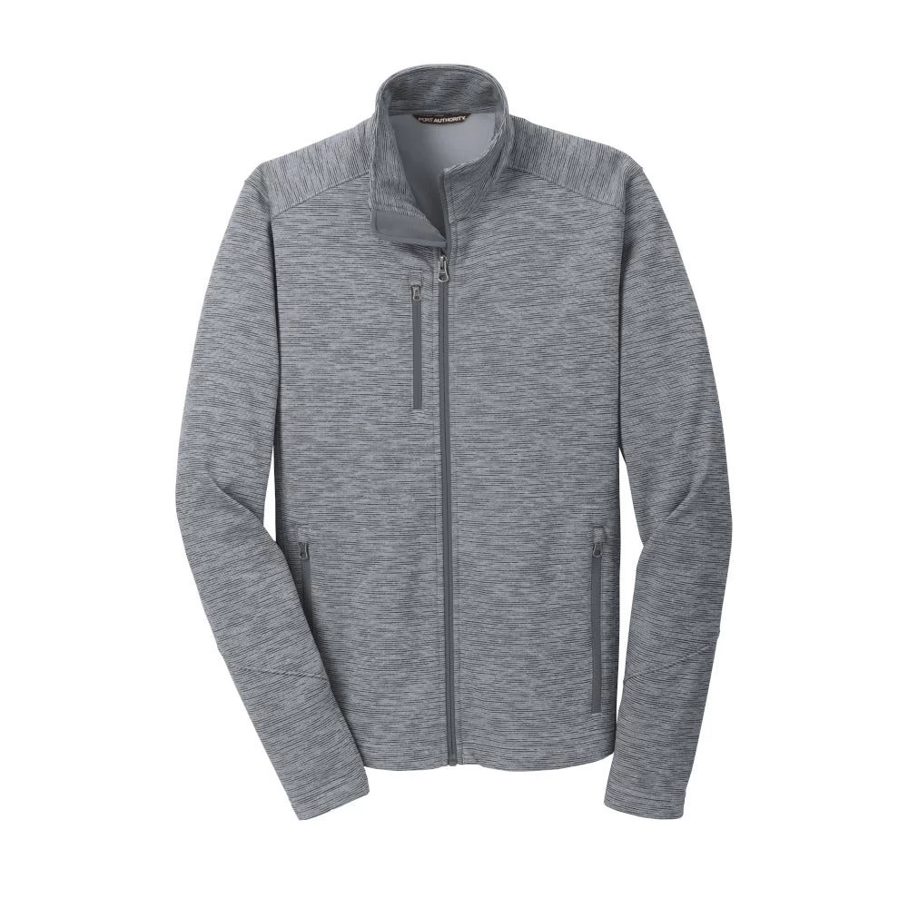 A digital stripe gives this jacket an ultramodern look that can easily transition from a workout essential to a sleek, polished office style.