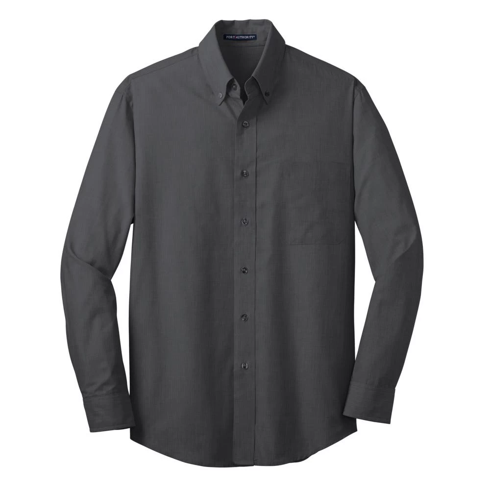 With a beautiful two–color weave–not to mention wrinkle resistance–this poplin shirt has a pleasing texture and truly impresses in the office.