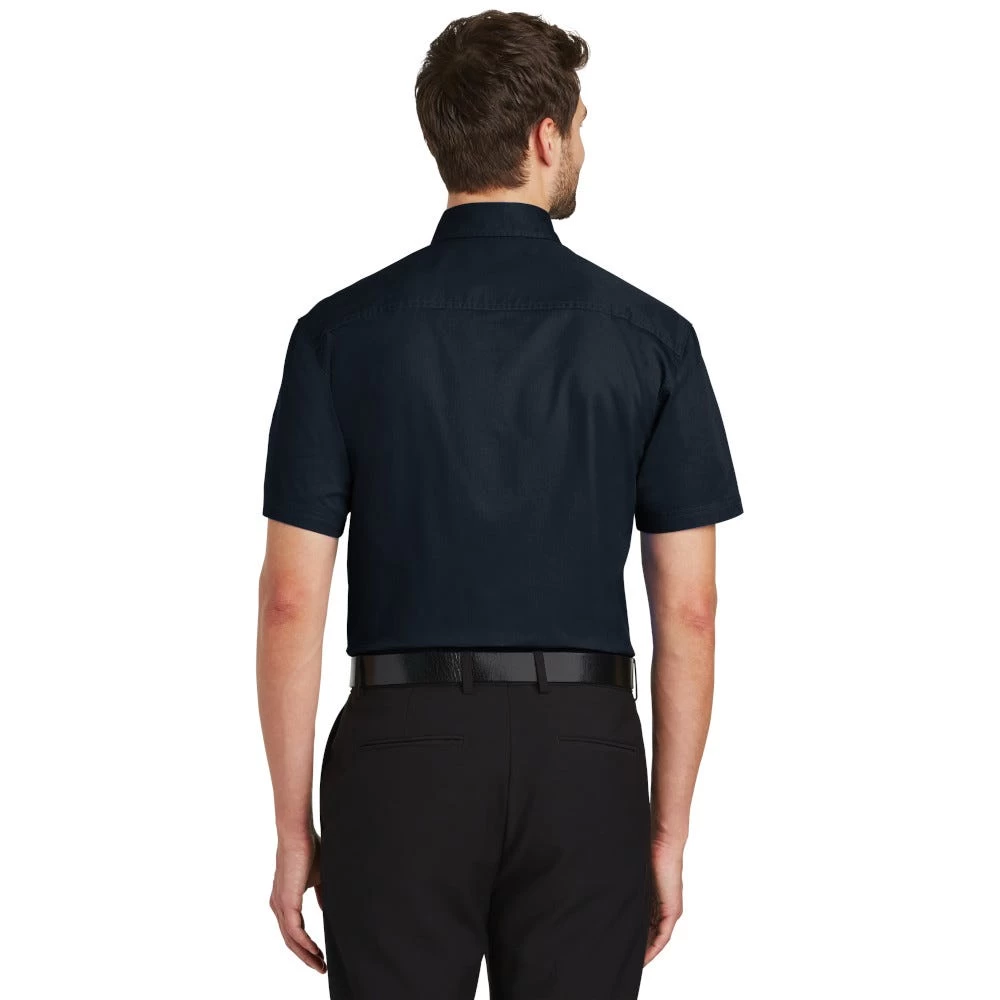 Port Authority brings you another great -fitting shirt. The ~Port Authority S500T Perfect Fit Short Sleeve Classic Navy Twill Shirts will have you always looking your best. This easy care 5 ounce 100% cotton shirt will keep you looking great day in and day out. The garment washed fabric will have you looking great and comfortable for whatever your days adventures.