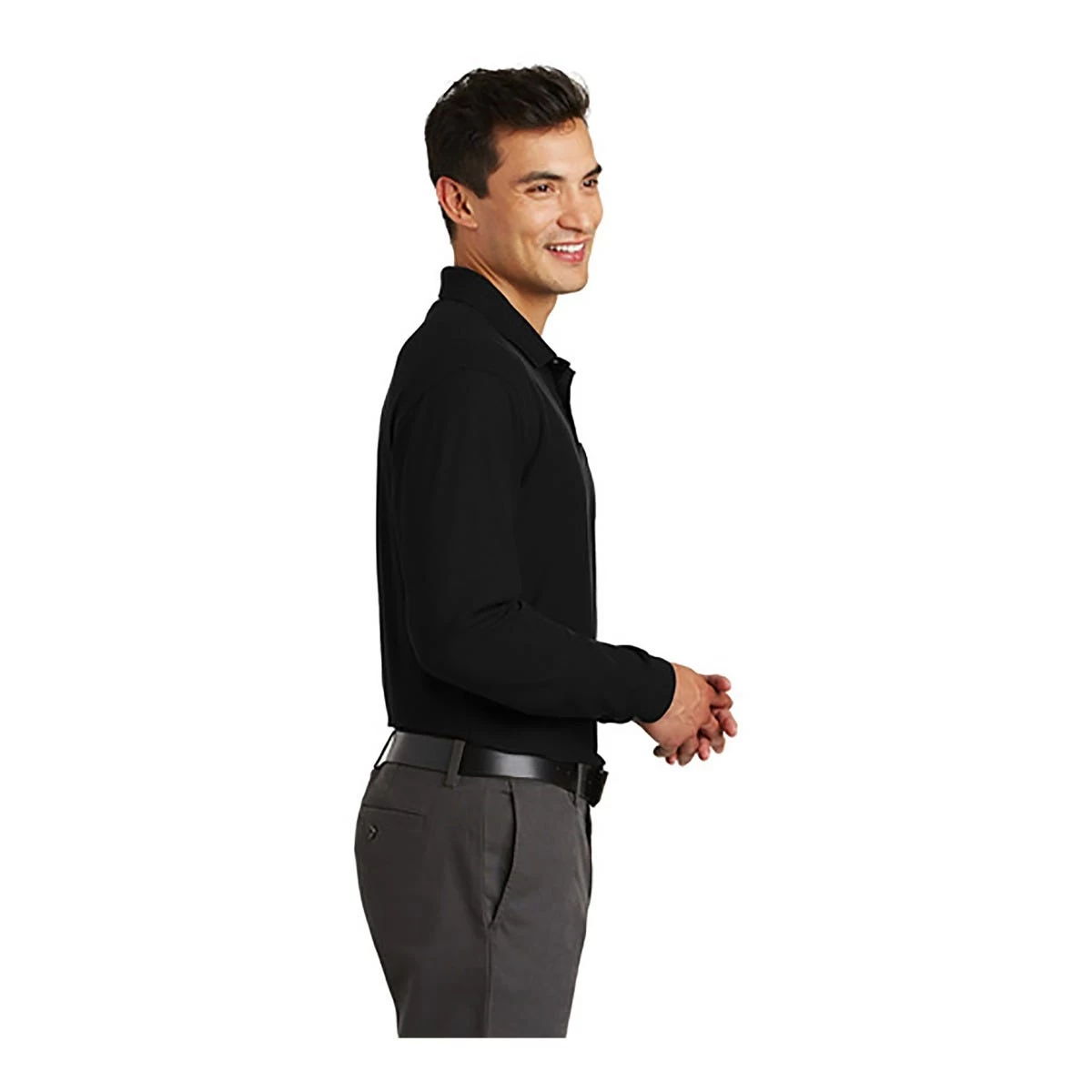 Port Authority Shirts: Men’s K500LSP BLK Black Silk Touch Long Sleeve Pocket Polo Shirt