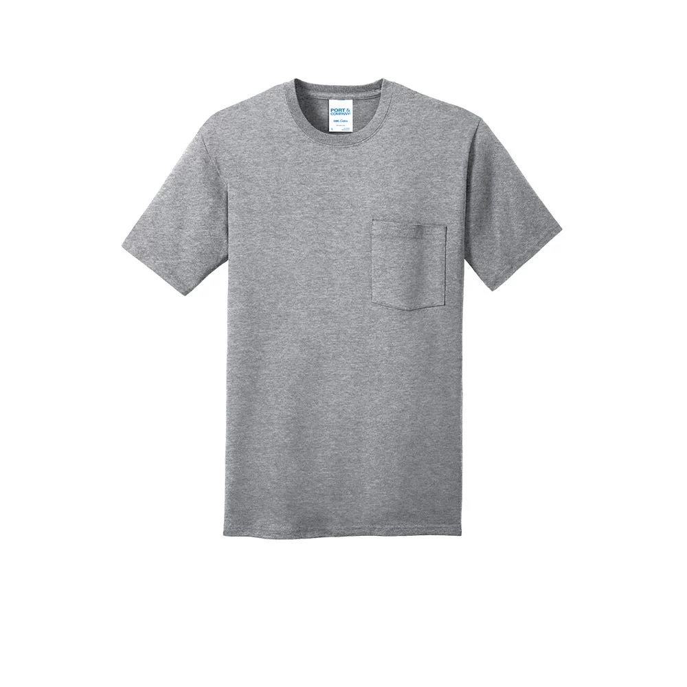 Port & Company Shirt: Men’s PC54P AH Athletic Heather Core Cotton Pocket Tee
