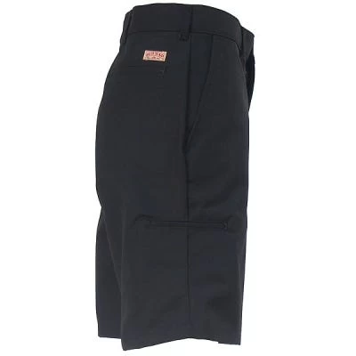 The Red Kap Black Cellphone Pocket Work Shorts are made from 7.25 ounce, 65% polyester 35% combed cotton twill finished with pre-cure durable press. These shorts have a 12-inch inseam, and an innerlined waistband for body and shape. There are two slack-style front pockets, darts over the set-in hip pockets for a more tailored fitted look, and a cell-phone pocket on the right side. The cell phone pocket has a hidden closure so you don’t lose your electronic tether to the rest of the world. These work shorts close with a heavy-duty brass ratcheting zipper and button closure.