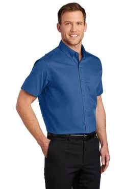 Port Authority Shirts: Men’s S664 TBLU True Blue Button Down Short Sleeve SuperPro Twill Shirt