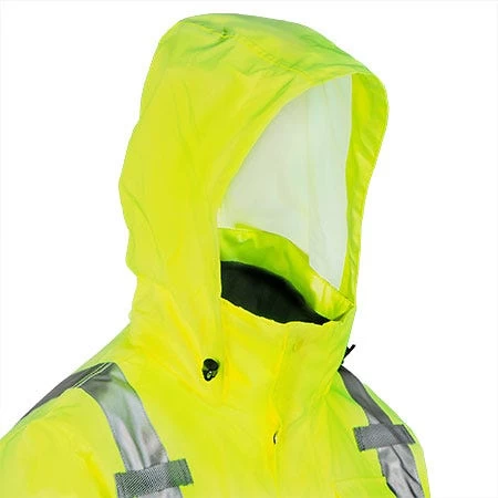 The premium features of this men’s jacket seem to be endless. The fabric allows for comfortable, breathable wear all year long, and the overhead shoulder design allows complete freedom of movement when you wear this hi-vis jacket. The 2-way storm fly front zipper with a throat guard ensures that wind and rain will not be an issue, and a hidden roll-a-way adjustable hood in the collar of this Tingley jacket allows for even more protection from the elements, if desired. Its seams are stitched and taped to give you 100% waterproof protection.