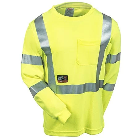 Just one cloud can be big enough to block out the sunlight and leave you standing in dim, dangerous conditions. But even in dim lighting, this ~Tingley Men’s S85522 Hi-Vis Yellow Cotton Blend Flame-Resistant Long-Sleeve Tee Shirt will stand out and let others know exactly where you are.