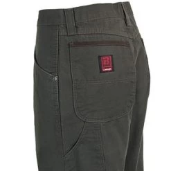 Designed for work, these men’s pants have plenty of onboard storage. They’re made with an oversized watch pocket and 13-inch deep front pockets with 7.25-ounce white pocketing. The right front pocket features a patented tape measure reinforcement. There are a right side hammer loop and a left-side tool pocket. Long-lasting Cordura-lined back pockets add to the durability of this Wrangler Riggs style.