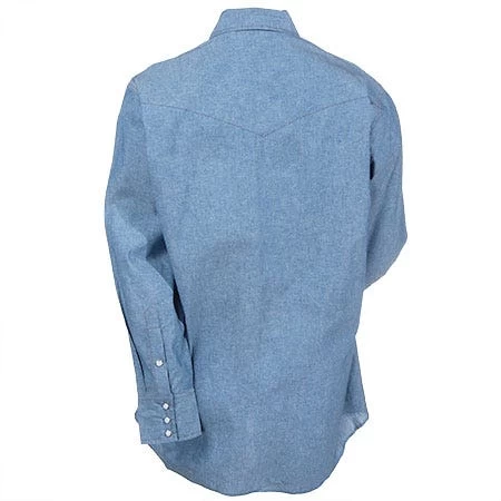 This collared, long-sleeved shirt is nice enough for Sunday dinner but tough enough for a Monday morning on the line. It’s made with 5-ounce, yarn-dyed 100% cotton chambray. Cotton is one of nature’s most versatile fabrics, tough enough to stand up to wear and still feel comfortable against your skin. Cotton is also breathable, and that’s important when you’re working. The airy material of this western shirt lets out hot air and lets the cooler stuff can flow in.